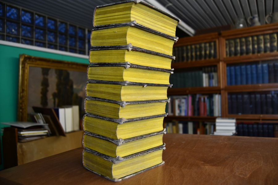 Format 14 x 11 cm, Pappband der Zeit mit handschriftlichem Rückenschild sowie umlaufendem Gelbschnitt