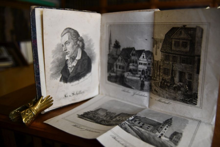 Beschreibung Einband berieben, bestoßen und teilweise mit etwas Verlust am Rücken. Auf dem Innendeckel von Band 1 eine WMF-Werbemarke eingeklebt. Nach dem Frontinspiz ein mehrfach gefaltetes Blatt eingeklebt mit Stahlstichansichten des Geburtshauses von Schiller in Marbach und des Geburtshauses von Wieland in Oberholzheim. Durchgehend immer wieder etwas fleckig. Insgesamt recht gut erhaltene Reihe.