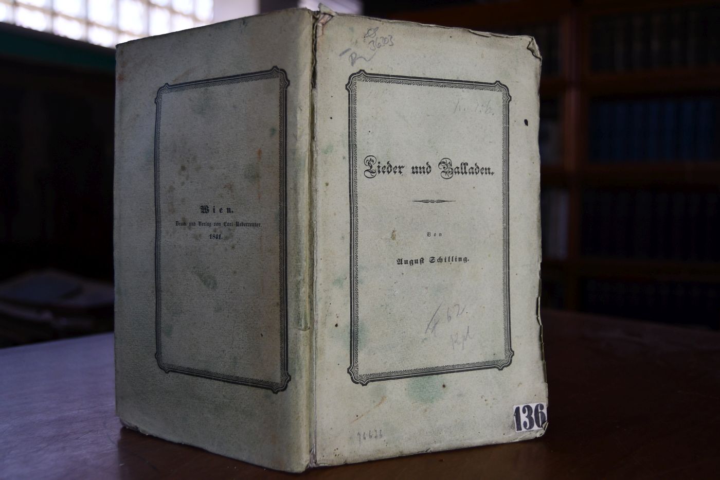 Beschreibung Einband berieben, bestoßen, angeschmutzt, mit Einrissen und fleckig. Vorderdeckel mit aufgeklebter Nummer. Innen durchgehend etwas fleckig.