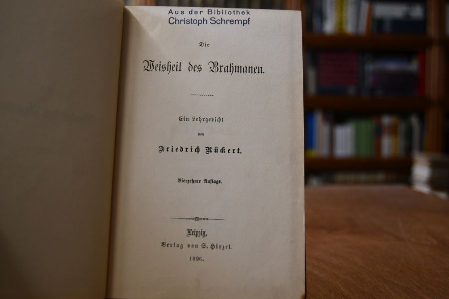 Beschreibung Einband berieben und bestoßen. Schnitt fleckig. Handschriftlicher Besitzereintrag und Besitzerstempel (Christoph Schrempf) auf Vorsatz bzw. Titel. Innen einige Bleistiftanstreichungen und Marginalien. "Christoph Schrempf (* 28. April 1860 in Besigheim; † 13. Februar 1944 in Stuttgart) war ein evangelischer Theologe und Philosoph. Seine Gesammelten Werke erschienen im Fr. Frommanns Verlag, Stuttgart 1930–1940, in 16 Bänden. Postum erschienen in mehreren Bänden, herausgegeben von Otto Engel bei Frommans, weitere Schriften unter dem Titel Religion ohne Religionen (Band 3, 1947)." (Wikipedia)