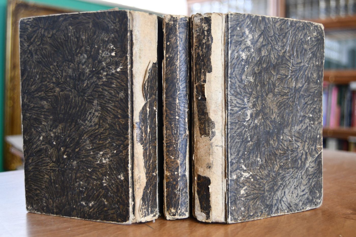 Beschreibung Einband berieben, bestoßen und am Rücken mit Verlust des Überzugpapiers. Buchblock von Bd. 1 vorgefallen. Schnitt angeschmutzt und fleckig. Handschriftliche Besitzereinträge auf Innendeckel (Fr. Böhm) und fliegendem Vorsatz (Fr. v. Olfers). Durchgehend fleckig und feuchtigkeitsrandig.