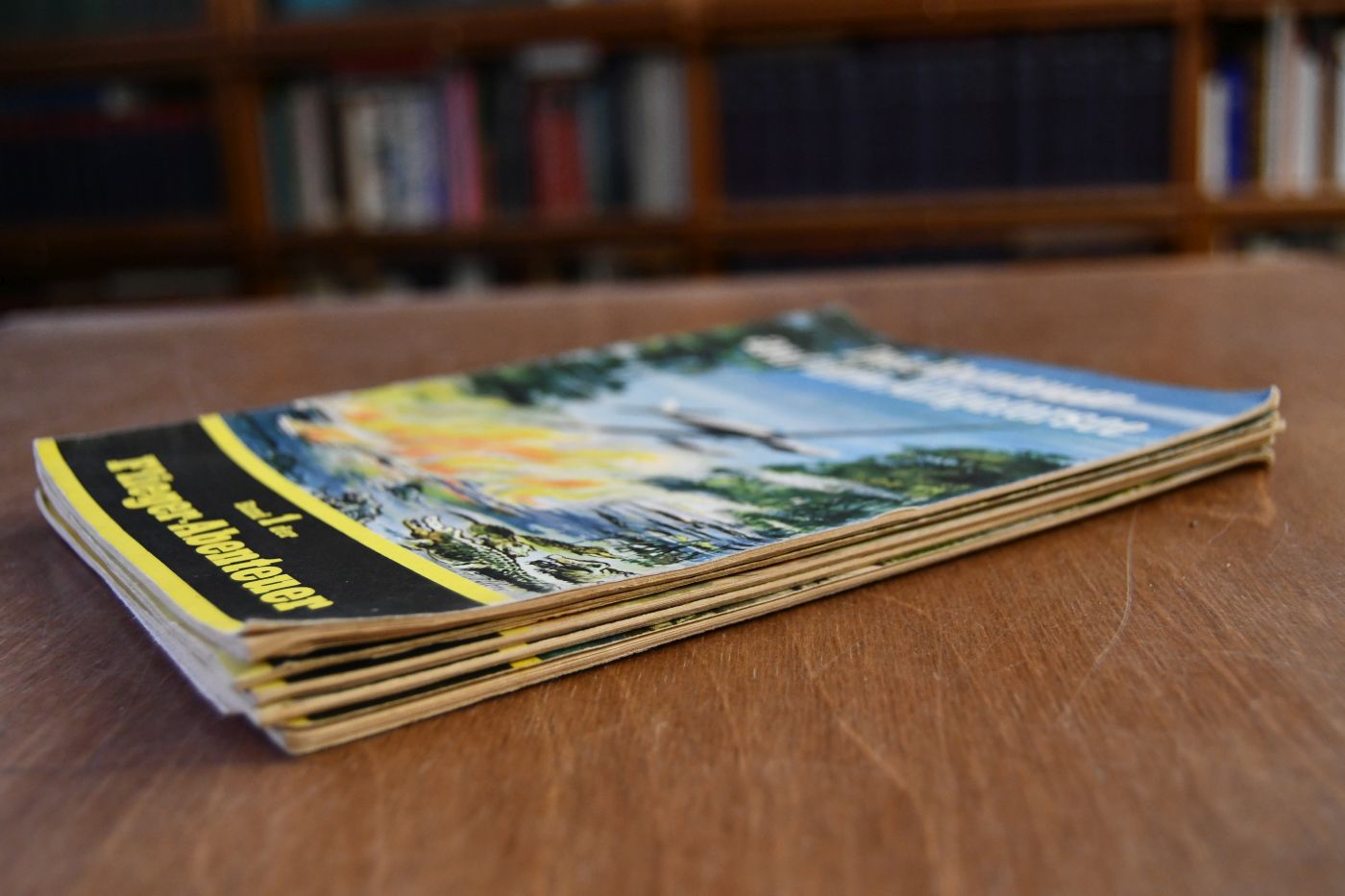 Flieger-Abenteuer. Bde. 1-5. 1. Das Abenteuer auf dem Alligatorsee. 2.Unter den Giftpfeilen der Parentintin. 3. Der Kampf um die Fazenda. 4. Die Entführung des Rebellengenerals. 5. In der Fieberhölle des Rio Negro.