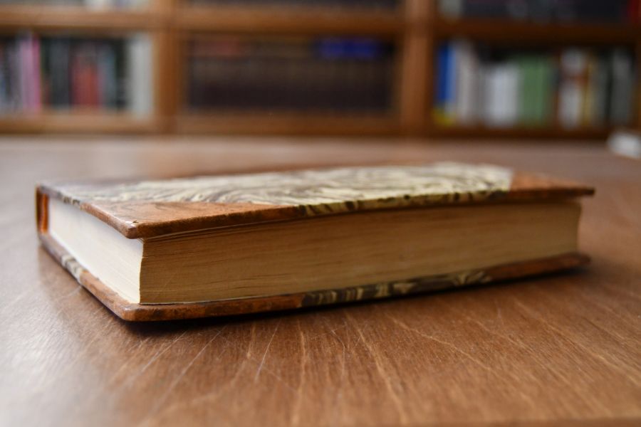 Format 17 x 12 cm, privates Halbleder mit eingebundenen Broschurdeckeln