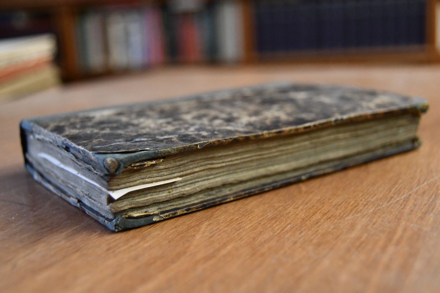 Beschreibung Einband berieben, bestoßen, fleckig und angeschmutzt. Bindung gelockert, einige Lagen vorgefallen. Durchgehend fleckig. Immer wieder eselsohrig und mit Knickspuren.