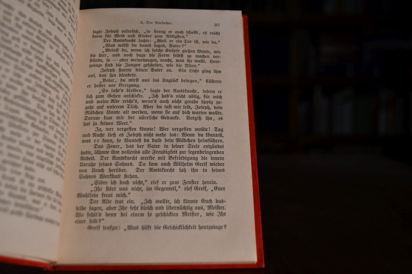 Beschreibung Einband berieben und bestoßen. Schnitt fleckig. Vorderer Vorsatz mit durchgehendem Längsfalz. Gelegentlich fleckig und letzte Seiten feuchtigkeitsrandig.