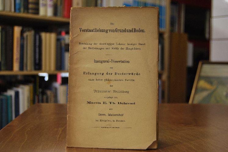 Die Verstaatlichung von Grund und Boden. Entstehung der einschlägigen Lehren; heutiger Stand der Bestrebungen und Kritik der Haupt-Ideen.