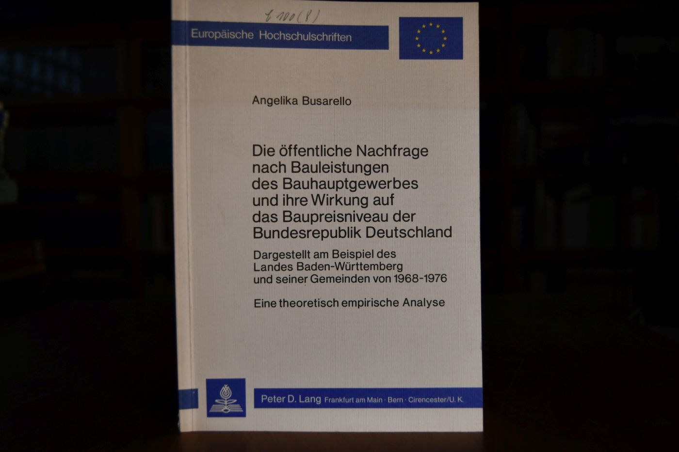 Die öffentliche Nachfrage nach Bauleistungen des Bauhauptgewerbes und ihre Wirkung auf das Baupreisniveau der Bundesrepublik Deutschland. Dargestellt am Beispiel des Landes Baden-Württemberg und seiner Gemeinden von 1968 - 1976. Eine theoretische empirische Analyse.