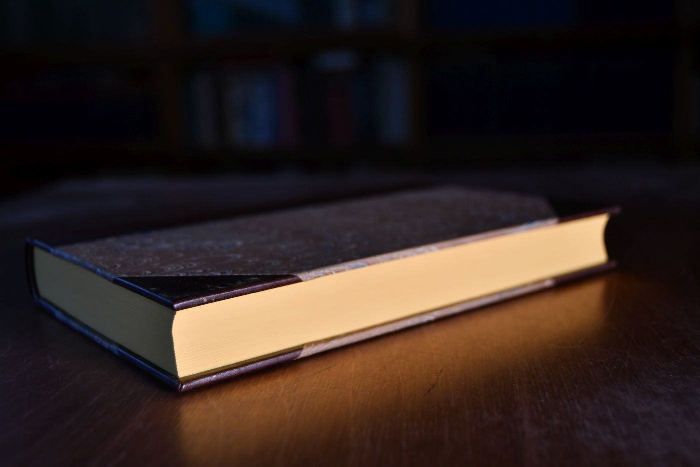 Format 21 x 14 cm, Halbleder auf 5 Bünden mit umlaufendem Farbschnitt