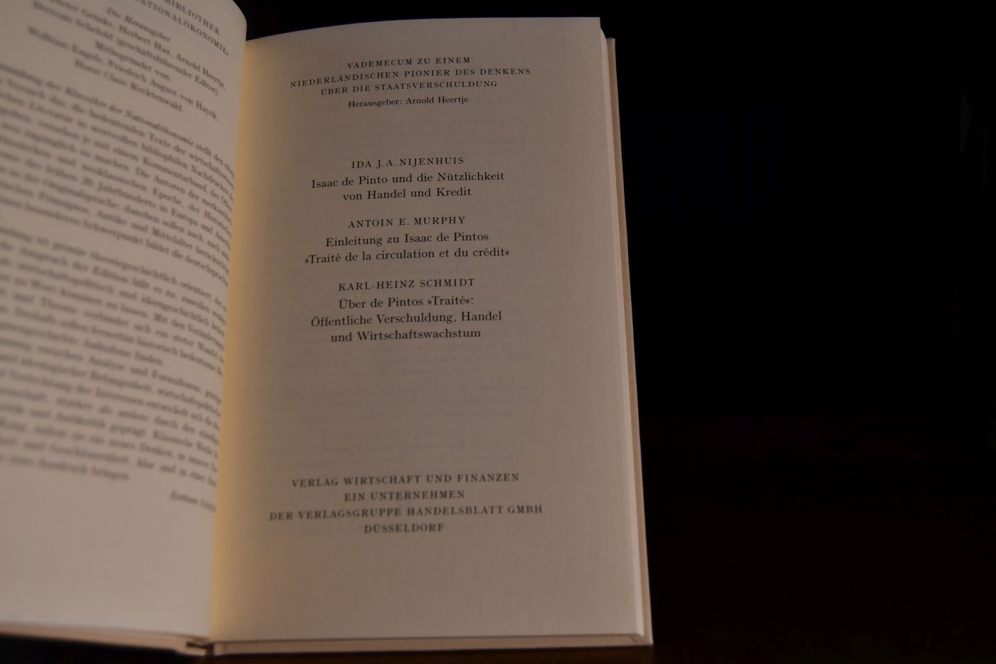 Beschreibung Verlagsfrisch. Isaac de Pinto (1717-1787) wurde in Amsterdam als dritter Sohn einer Familie geboren, die innerhalb der dortigen Gemeinde portugiesischer Juden eine herausragende Stellung innehatte. Im Alter von siebzehn Jahren heiratete er die Tochter des Benjamin Nunes Henriques, der Financier und Teilhaber der niederländischen Ostindienkompagnie war. 1748 wurde de Pinto zunächst Leiter der Ostindien- und 1749 auch der Westindienkompagnie. Er gehörte damit zu den führenden Kaufleuten und Financiers im niederländischen Finanzwesen, und war aktiv daran beteiligt, für die niederländische Staatskasse Geld aufzutreiben und dem Staat Geld zu leihen. Diese Tätigkeit übte er nicht nur in Amsterdam, sondern auch in Paris und London aus. Seine Sachkenntnis in Finanzangelegenheiten wurde weithin bekannt, als Berater Wilhelms IV. bewegte er sich in den Kreisen der internationalen Diplomatie. In einem berühmt gewordenen Briefwechsel mit Voltaire stritt er gegen dessen antisemitische Äußerungen; mit Dénis Diderot, David Hume und Victor de Mirabeau verbanden ihn kritische Diskussionen über Fragen der politischen Ökonomie. De Pintos ökonomisches Hauptwerk "Traité de la circulation et du crédit" wurde 1771 bei dem berühmten Drucker und Verleger Marc-Michel Rey in Amsterdam veröffentlicht. De Pinto untersucht darin die Frage, ob die öffentliche Verschuldung für die Volkswirtschaft eine Last oder einen Vorteil darstelle. Er beschreibt die Unterschiede zwischen dem Wertpapierhandel in England, Frankreich und Holland, und erläutert am Beispiel Englands ausführlich die Umlaufgeschwindigkeit des Geldes. Der "Traité" erweist sich als ein "für das politisch-ökonomische Denken des 18. Jahrhunderts aufschlußreiches und für die Gegenwart erstaunlich aktuelles Werk" (Karl-Heinz Schmidt).