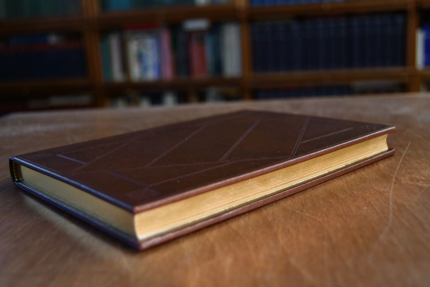 Format 22 x 16 cm, Leder auf 5 Bünden mit umlaufendem Goldschnitt