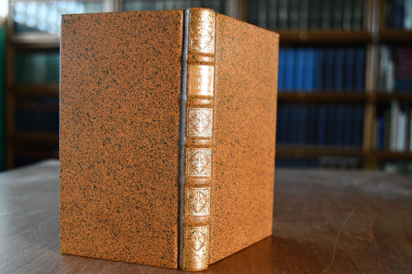 Format 16 x 8 cm, Leder auf 5 Bünden mit umlaufendem Sprengschnitt