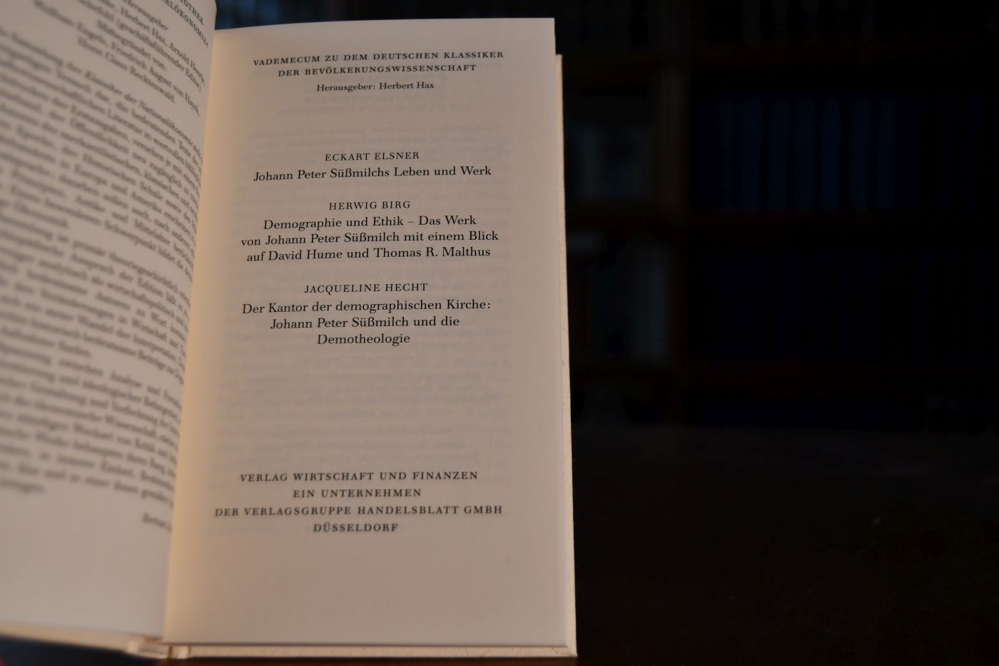Beschreibung Verlagsfrisch. Mit leichten Lagerspuren. Mit seinem ökonomischen Hauptwerk "Die göttliche Ordnung in den Veränderungen des menschlichen Geschlechts" (1741) wurde Johann Peter Süßmilch zum Ahnherr der Demographie und Statistik. Dem Beispiel William Pettys und John Graunts folgend, unterzog er sich der Mühe eines jahrzehntelangen Studiums von Kirchenregistern und anderer ihm zugänglichen Daten, Tabellen und Schätzungen über die Bevölkerungsentwicklung in den verschiedenen Ländern. Bei der Analyse dieses Materials stellte er eine Reihe von Regelmäßigkeiten in dem scheinbar regellosen Auf und Ab der natürlichen Bevölkerungsbewegung fest. Diese brachten ihn zu einer der ersten brauchbaren Formulierungen des für die Statistik und die Wahrscheinlichkeitstheorie grundlegenden Gesetzes der großen Zahl. "In Deutschland erkannte Süßmilch als erster, daß zwischen ökonomischer und demographischer Entwicklung ein Zusammenhang besteht; seine Memoranden zeigen, daß daraus praktische Vorschläge für die Politik abzuleiten sind. "...Der Name Süßmilch muß genannt werden, wenn schlechthin über die Anfänge und Entwicklung der Demographie und Statistik geschrieben wird" (Jürgen Wilke).Im Kommentarband zu dieser Ausgabe stellt Eckart Elsner (Berlin) Leben und Werk Johann Peter Süßmilchs dar; Herwig Birg (Bielefeld) untersucht die Zusammenhänge von Süßmilchs Denken mit dem von David Hume und Thomas Robert Malthus; Jacqueline Hecht (Paris) analysiert seine Demotheologie.