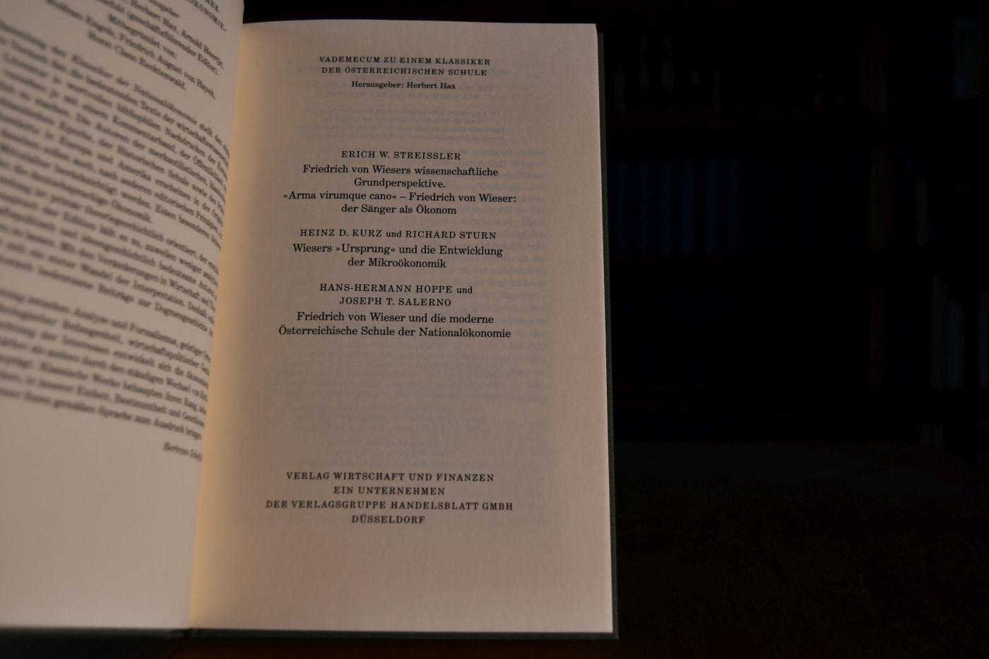 Beschreibung Verlagsfrisch. Friedrich Freiherr von Wieser (geboren 1851 in Wien, gestorben 1926 in Brunnwinkel/Salzkammergut) arbeitete, nach einem Studium der Rechtswissenschaften an der Universität Wien, in der niederösterreichischen Finanzverwaltung. Gemeinsam mit seinem späteren Schwager Eugen von Böhm-Bawerk vertiefte er von 1875 bis 1877 seine ökonomischen Kenntnisse bei Carl Knies in Heidelberg, Bruno Hildebrand in Jena und Wilhelm Roscher in Leipzig. Nach seiner Habilitation (1884) lehrte Wieser bis 1903 an der Karls-Universität in Prag. 1903 folgte er seinem ehemaligen Lehrer Carl Menger auf dessen Lehrstuhl für Politische Ökonomie an der Universität Wien, den er bis 1922 innehatte. In den Jahren 1917 bis 1918 war er Handelsminister der österreichischen Regierung; nach seiner Emeritierung (1922) war Wieser bis 1925 als Honorarprofessor tätig. In seinem 1884 veröffentlichten Werk »Über den Ursprung und die Hauptgesetze des wirthschaftlichen Werthes« - wie auch später in »Der natürliche Werth« (1889) - entwickelte Friedrich von Wieser die von Carl Menger begründete Methodologie sowie die subjektive Werttheorie der Österreichischen Schule weiter. »Seine Untersuchung über das Verhältnis der Kosten zum Wert unter dem Gesichtspunkt der subjektiven Werttheorie gipfelt in einer Erklärung der Kosten als indirekter Nutzen, die sich auf eine ausführliche Darstellung des Vorganges des Nutzenausgleichs in der Produktion gründet. Die von Wieser in dem Buch zum ersten Mal vorgetragenen Begriffe des Grenznutzens, der Produktionsverwandtschaft, der Kosten als indirekter Nutzen und der Wertzurechnung, die heute zum eisernen Bestand der Wirtschaftstheorie gehören, haben den wichtigsten Gedankengängen der subjektiven Werttheorie erst jene Faßlichkeit gegeben, die Bedingung für ihre durchgreifende Wirkung war... Wieser selbst hat die ausgezeichnete und vollkommen in sich abgerundete Arbeit jedoch immer als eine vorläufige...betrachtet«, schreibt F. A. v. Hayek.