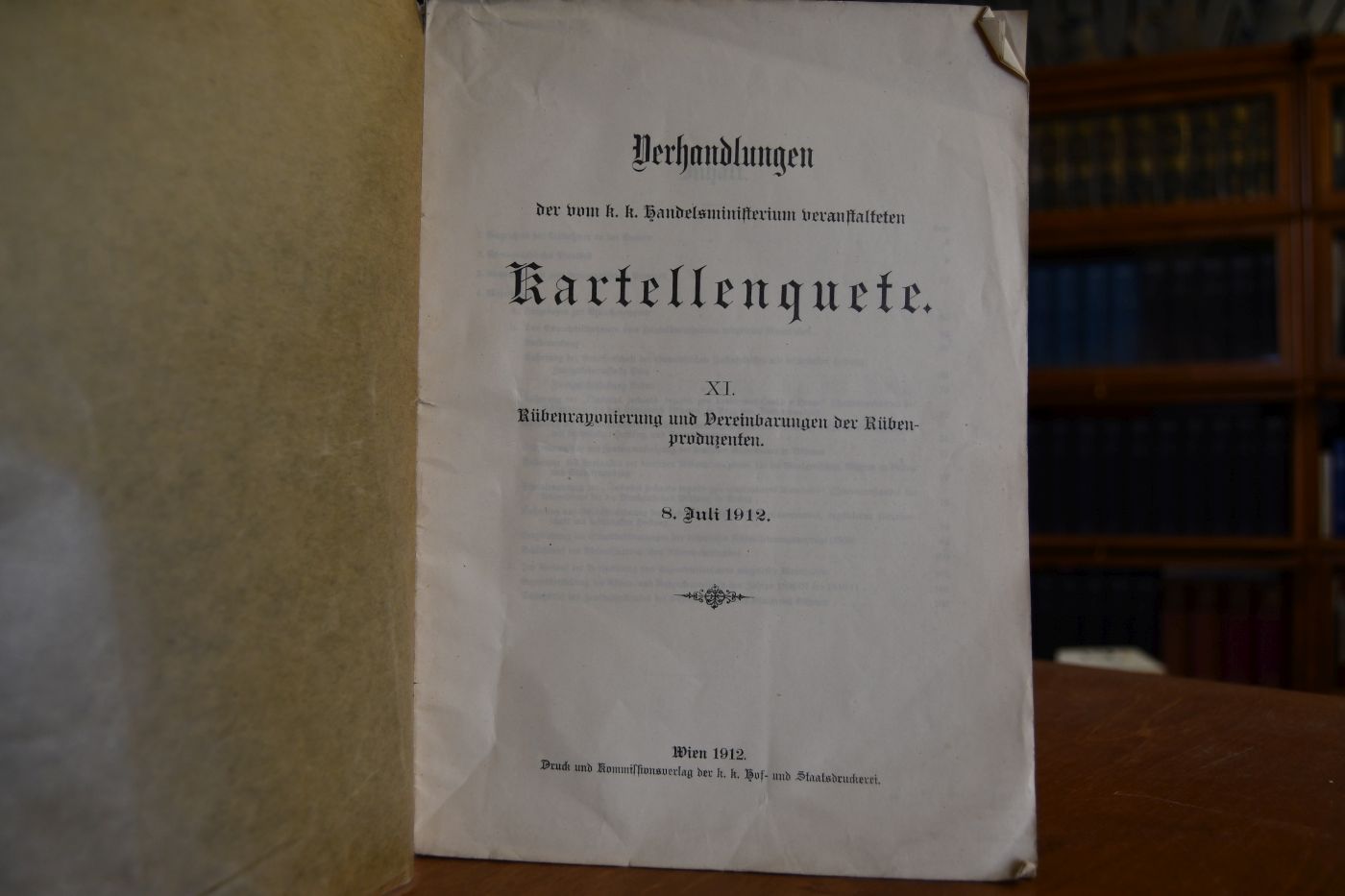 Verhandlungen der vom k.k. Handelsministerium veranstalteten Kartellenquete. XI. Rübenrayonierung und Vereinbarungen der Rübenproduzenten, 8. Juli 1912.