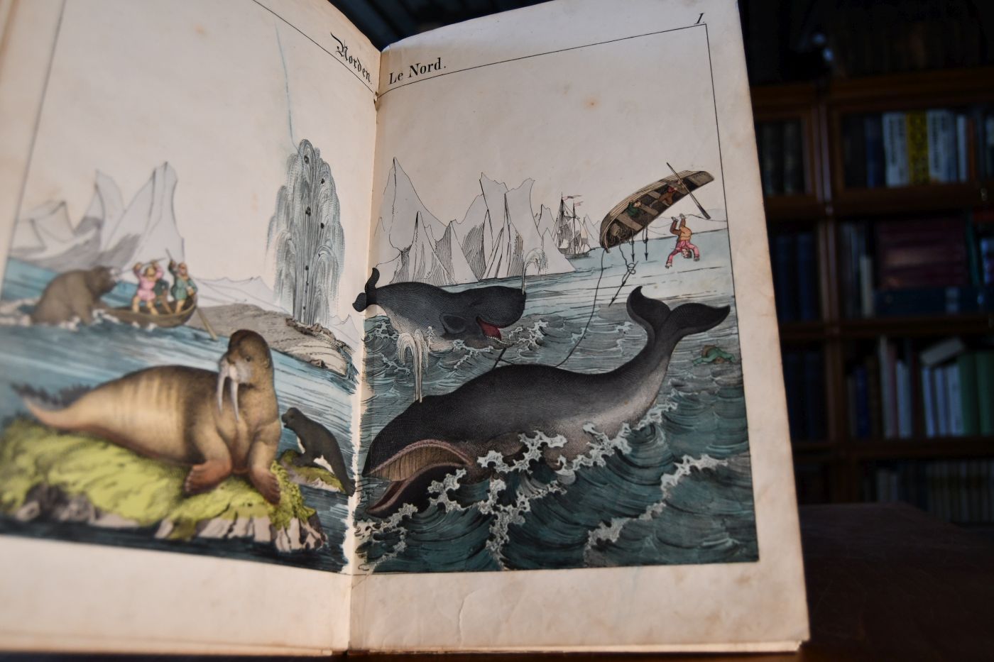 Beschreibung Einband berieben, bestoßen, angeschmutzt und fleckig. Falz vor Titel geöffnet. Durchgehend fleckig und mit Randeinrissen. Die schönen idyllisch-paradiesischenTafeln zeigen vor allem Tiere und Pflanzen, Flora und Fauna, aber auch häusliche Gegenstände und Geräte aus anderen Erdteilen. Vergl. Wegehaupt 155 (kennt nur Teil 1 und 2).