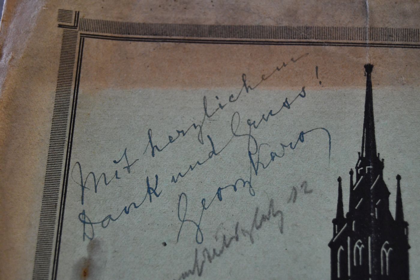 Beschreibung Einband berieben, bestoßen, gebräunt, mit Falzspuren und Einrissen. Durchgehende Falzspur. Papierbedingt gebräunt und mit Randeinrissen. Handschriftliche Widmung von Georg Karo auf dem Vorderdeckel. Enthält neben einem Artikel von Georg Karo auch einen von Baldur von Schirach.