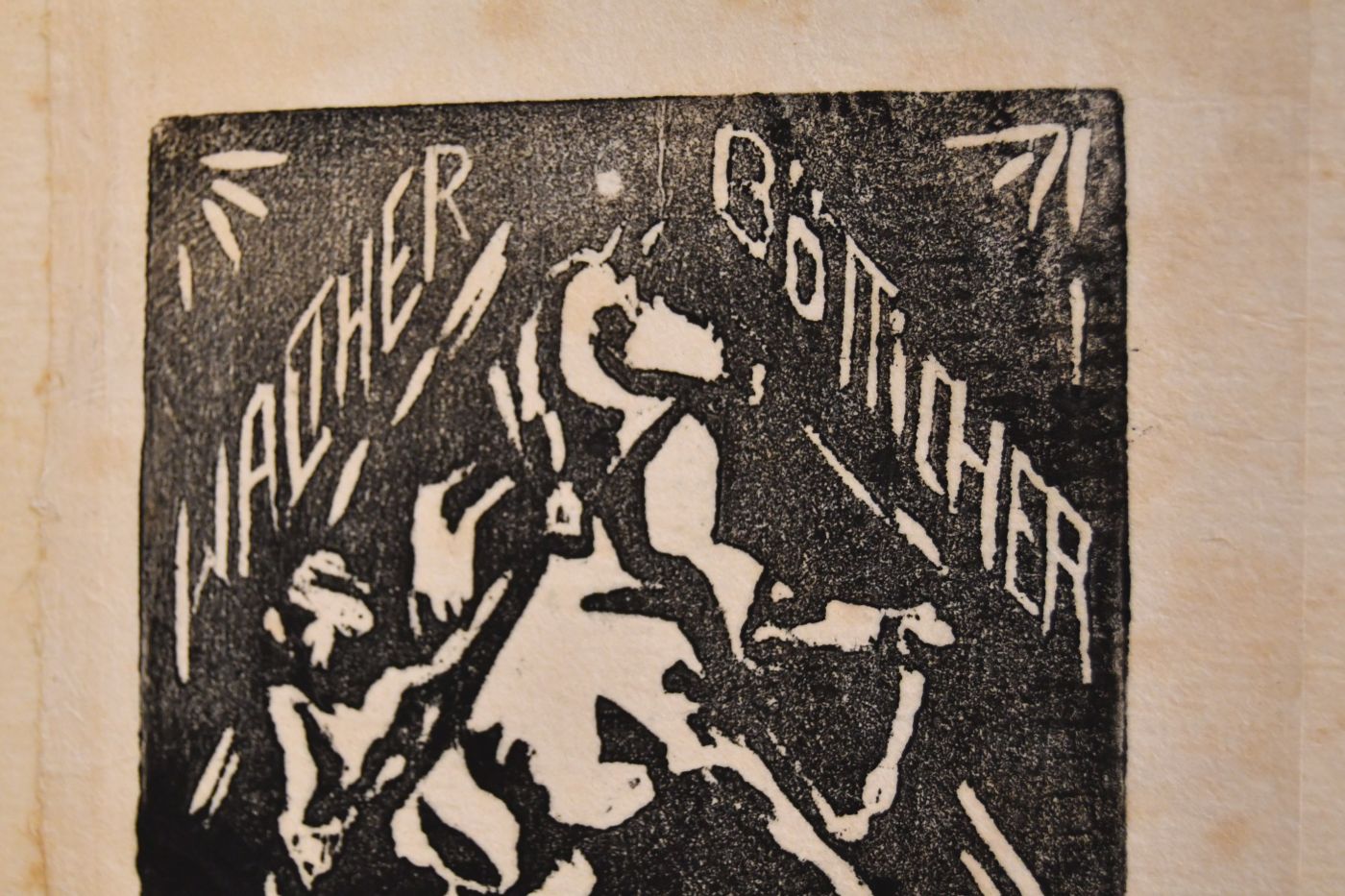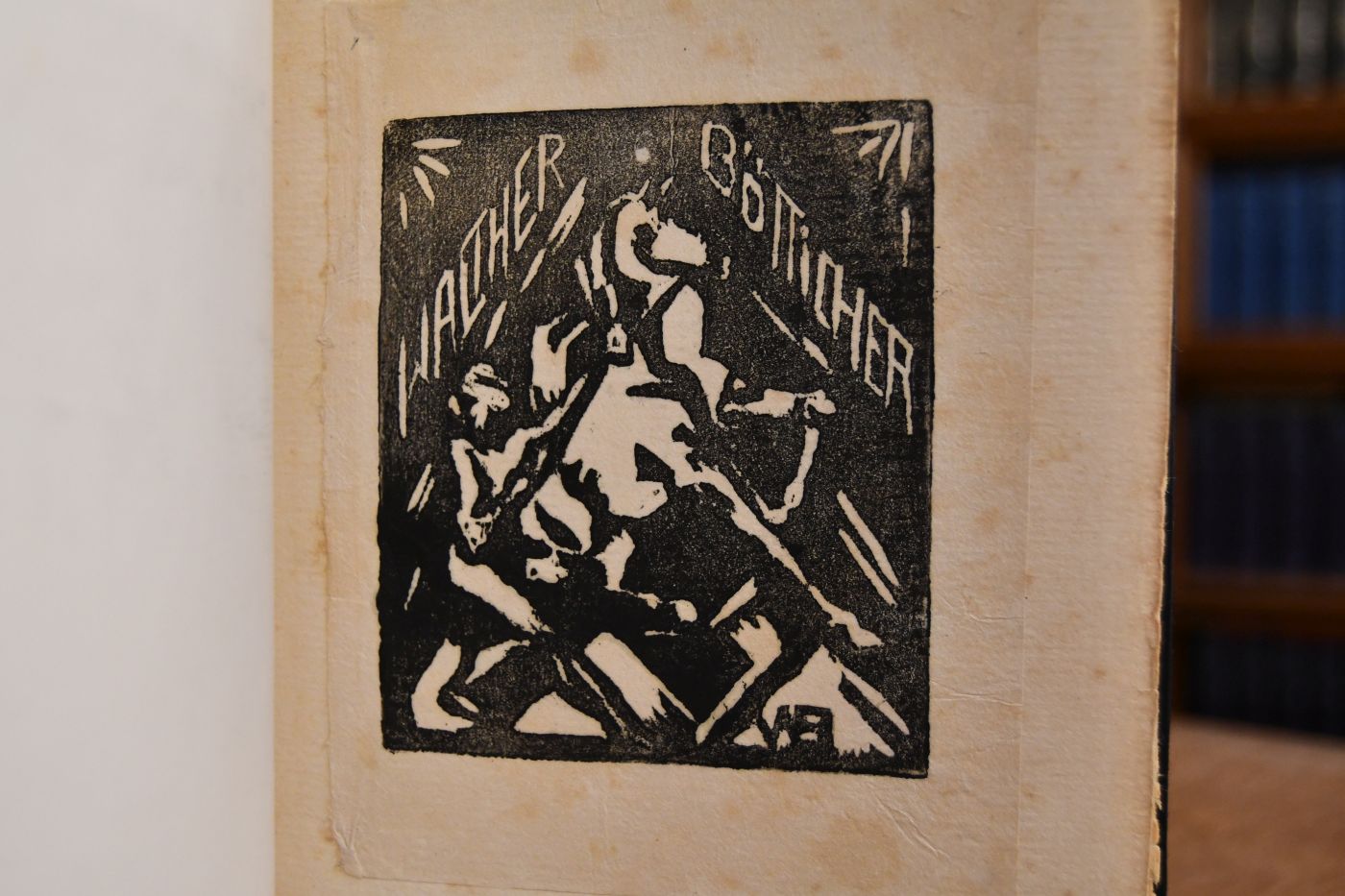 Beschreibung Einband berieben. Durchgehend fleckig und mit Randeinrissen. Expressionistisches Exlibris für Walther Bötticher (wohl ein Eigenexlibris des expressionistischen Künstlers) auf dem fliegenden Vorsatz. Mehrfach verwendeter Exlibrisstempel (Bötticher Roteburg 1925). Duchgehend fleckig. Fromm III, 143.