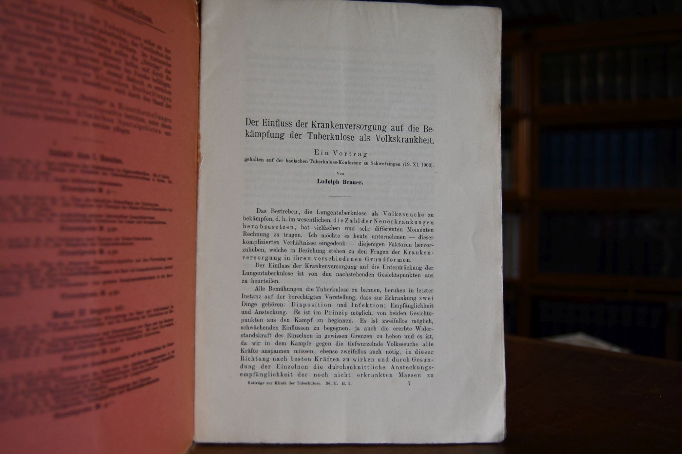 Beiträge zur Klinik der Tuberkulose. Band II, Heft 2 Brauer Der Einfluss der Krankenversorgung auf die Bekämpfung der Tuberkulose als Volkskrankheit. 2. Hess Über das Verhalten und die Bedeutung des ciastischen Fasernetzes in der Lunge bei Erkrankung an Tuberkulose nebst Betrachtungen über den Begriff Disposition. 3. van Oordt Der Wintersport in der Prophylaxe der Lungentuberkulose. 4. Schoenborn Aussterbende Familien. 5. Curschmann Klinischer Beitrag zur Tuberkulose des Pylorus. 6. Brauer Anzeigerecht, Anzeigepflicht und Morbiditäts-Statistik.
