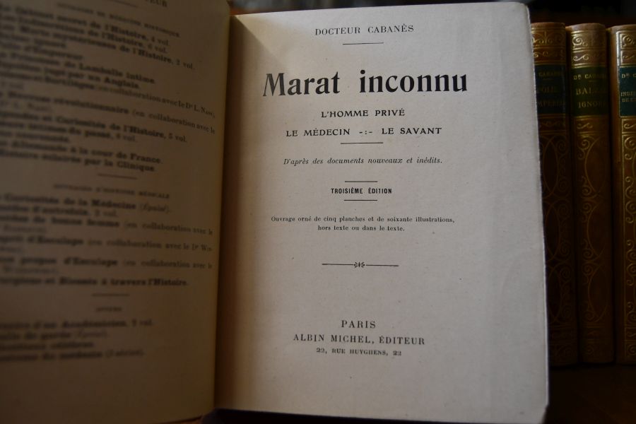 19 Bde. Medicine historique. Enthält Le Mal Hereditaire 2 Bde. [Les descendants de Charles-Quint, Les Bourbons d`Espagne]; L`Enfer de l`Histoire 2 Bde. [Les Reprouves et les Calomnies, Princesses et Souverains]; Les Morts mysterieuses de l`Histoire 2 Bde. [Rois, Reines et Princes Francais de Charlemagne a Louis XIII, De Louis XIII a Napoleon III]; La Nevrose Revolutionnaire 2 Bde.; Marat inconnu [L`Homme prive, le Medecin, Le Savant]; Fous couronnes [Jeanne la Folle, Philippe II, d`Espagne, Pierre le Grand, Pierre III, Paul Ier de Russie, Christian VII de Danemark, Othon et Louis II de Baviere]; La Belle-Soeur du Grand Roi (Une Allemande a la Cour de France) [La Princesse Palatine, Les Petits Talents du Grand Frederic, un Medecin Prussien, Espion dans les Salons romantiques]; Folie d`Empereur [Une dynastie de degeneres, Guillaume II juge par la science]; Balzac ignore; Les Indiscretions de l`Histoire, 6 Bde.