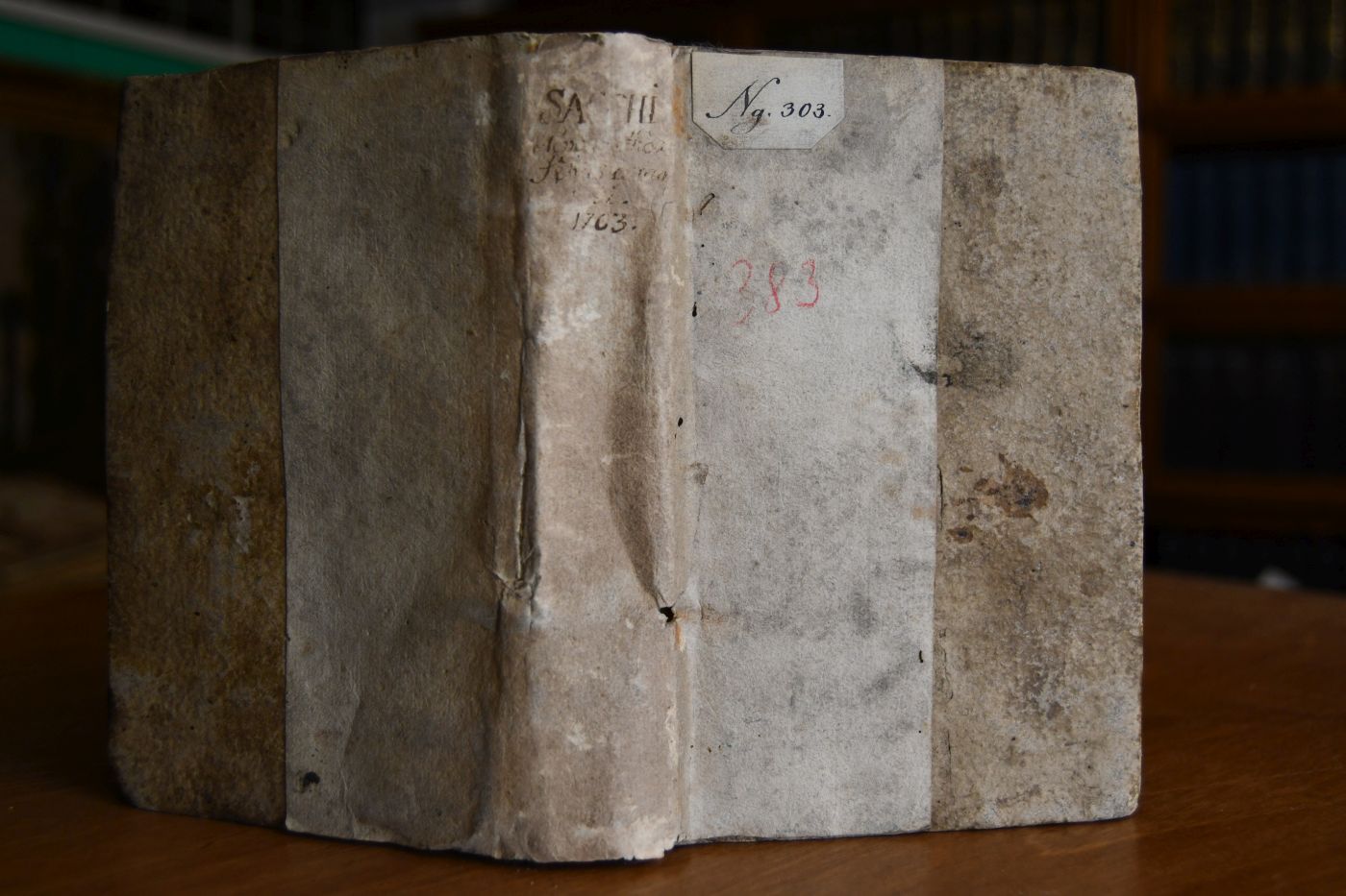 Beschreibung Einband fleckig, angeschmutzt, berieben und bestoßen. Rücken älter verstärkt. Schnitt angeschmutzt und fleckig. Bindung gelockert, eine Lage vorgefallen (nicht lose). Bibliotheksexemplar (Bibliotheca Gleisdorfensis) mit den üblichen Stempeln und Eintragungen. Durchgehend fleckig.