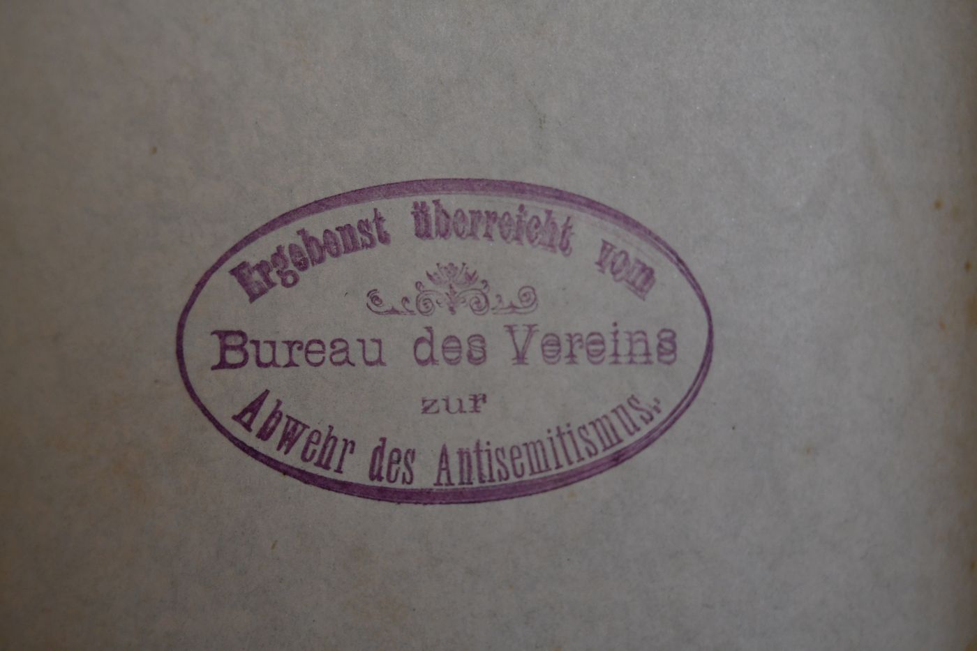 Beschreibung Einband berieben und bestoßen. Schnitt angeschmutzt. Mit Überreichungsstempel des Bureau des Vereins zur Abwehr des Antisemitismus auf dem fliegenden Vorsatz. Papierbedingt gebräunt. Immer wieder etwas fleckig. Gutes Leseexemplar.