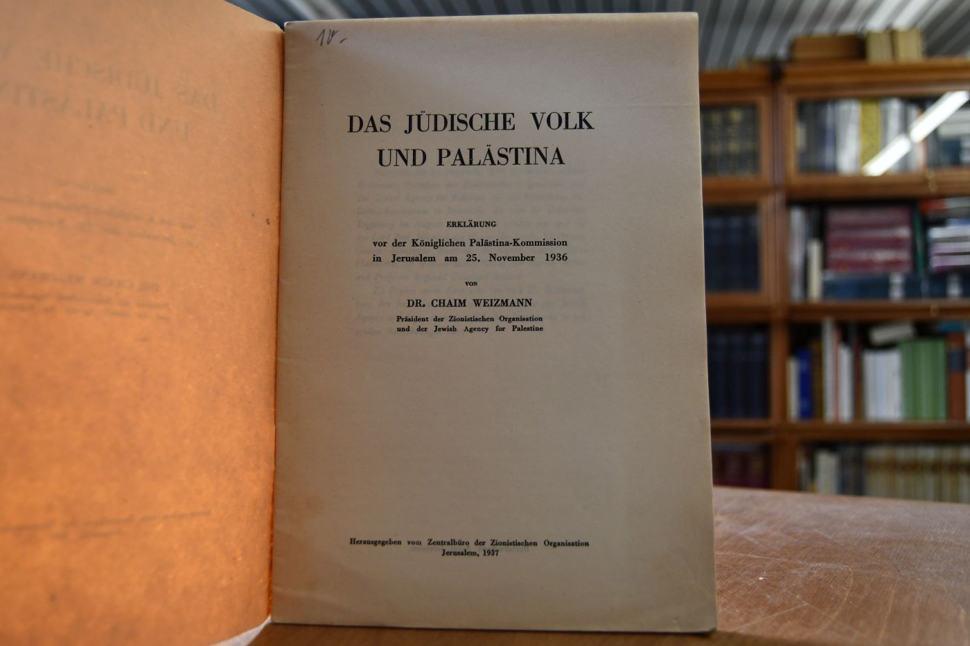 Das jüdische Volk und Palästina. Erklärung vor der Königlichen Palästina-Kommission in Jerusalem am 25. November 1936.