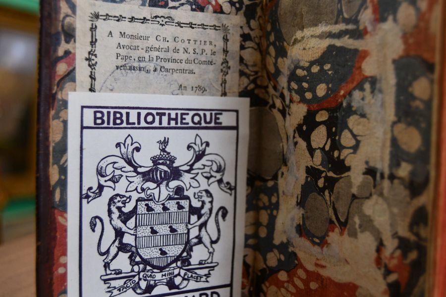 Beschreibung Einband berieben, bestoßen, mit Einrissen und am Rücken mit etwas Verlust. Auf vorderem fliegenden Vorsatz Spuren eies entfernten Exlibris. Aif Spiegel 2 Exlibris (Ch[arles] Cottier a Carpentras und Bibliotheque P. Daubignard). Auf Rückseite des fliegenden Vorsatzes handschriftliche Notizen. Auf Titel handschriftlicher Besitzereintrag (Jean Dietich) Und Bibliotheksstempel (Daubignard). Durchgehend mit Bleistiftan- und -unterstreichungen. Durchgehend immer wieder fleckig.