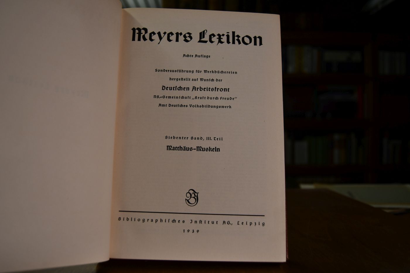 Sonderausführung für Werkbüchereien hergestellt auf Wunsch der Deutschen Arbeitsfront NS.-Gemeinschaft "Kraft durch Freude" Amt Deutsches Volksbildungswerk