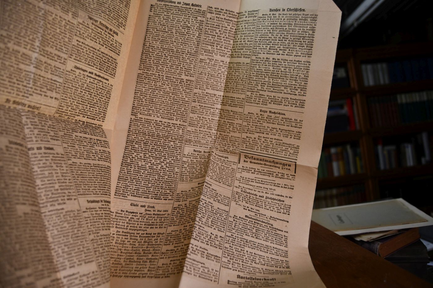 Beschreibung Berieben, bestoßen und mit Einrissen. Papierbedingt gebräunt. Durchgehender Längs- und Querfalz.