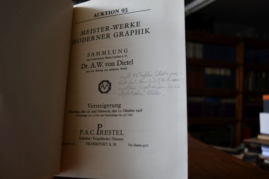 F.A.C. Prestel, Auktion 95. Meister-Werke moderner Graphik. Sammlung des verstorbenen Herrn Landrat a.D. Dr. A.W. von Dietel und ein Beitrag aus anderem Besitz. Versteigerung 16.+17. Oktober 1928.
