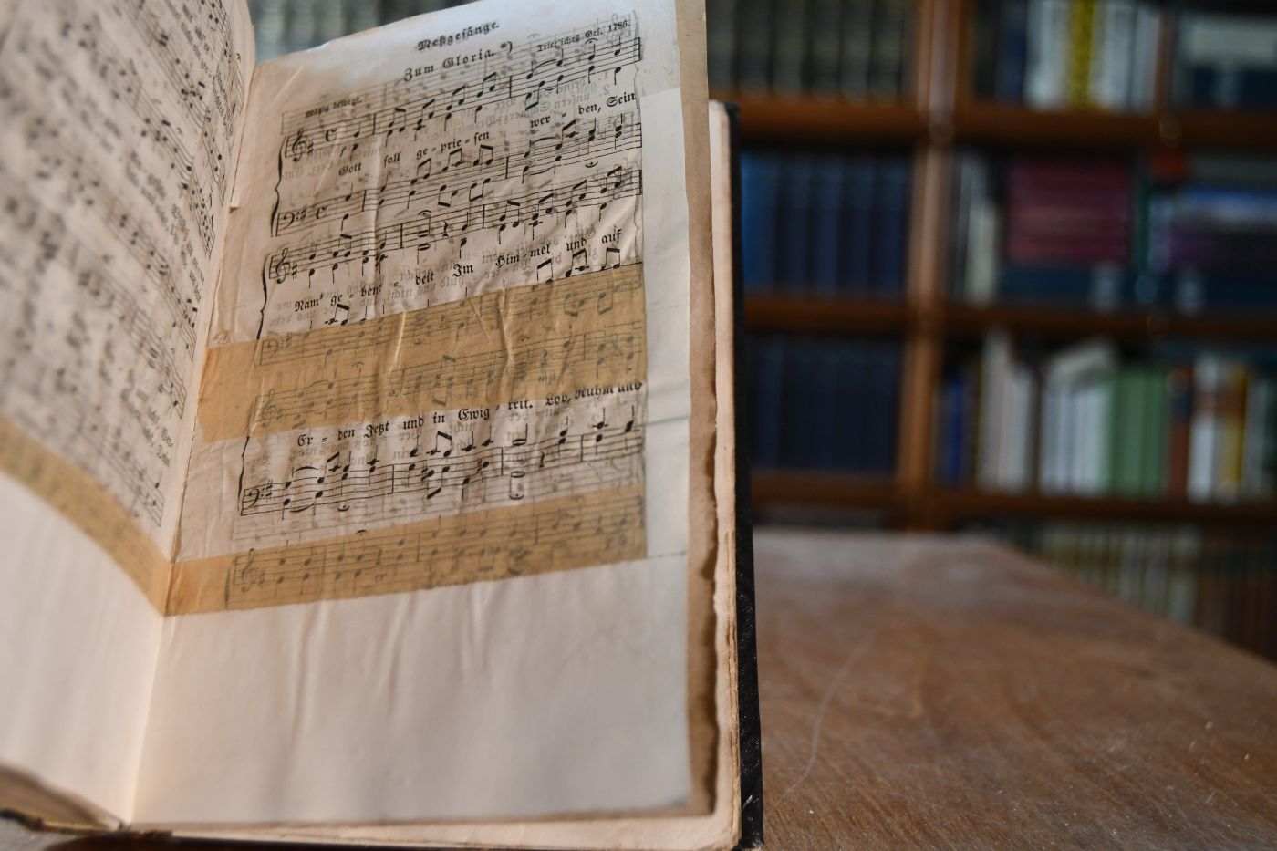 Beschreibung Einband berieben und bestoßen. S. 355-382 vorgefallen. S. 359-362 an den Rändern mit Papierstreifen überklebt und mit Text- und Notenverlust.