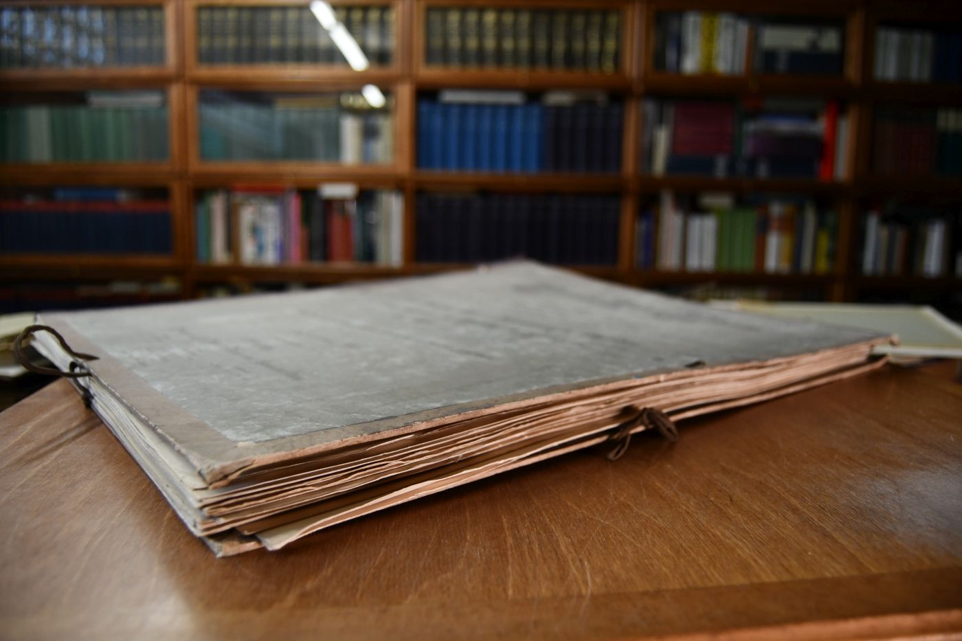 Format 51 x 43 cm, Halbleinenmappe mit Schließbändern