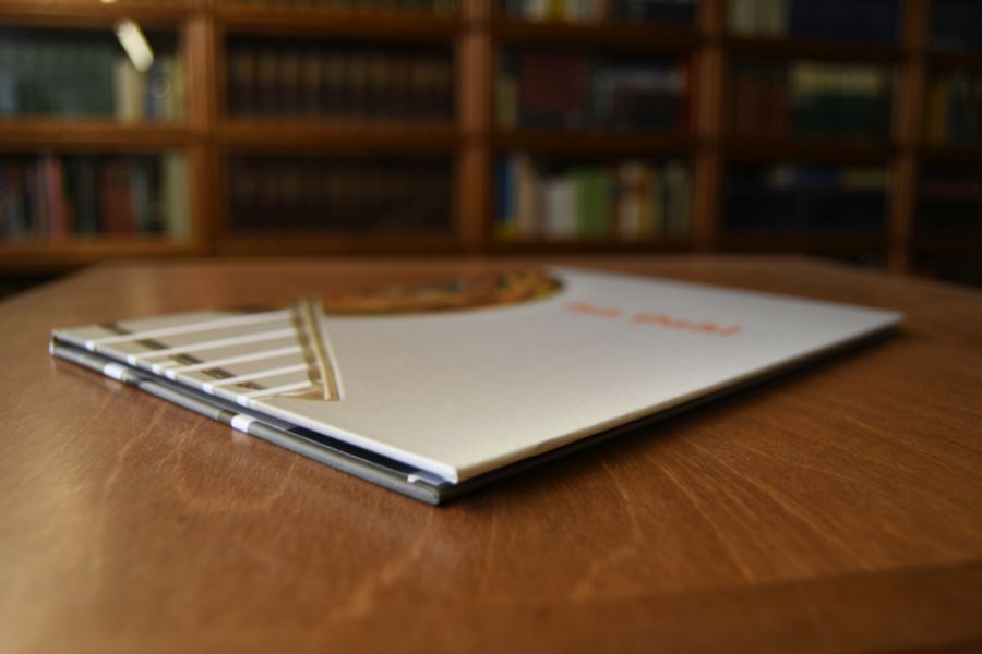 30 x 21 cm, Pappdeckel mit Faltblatt