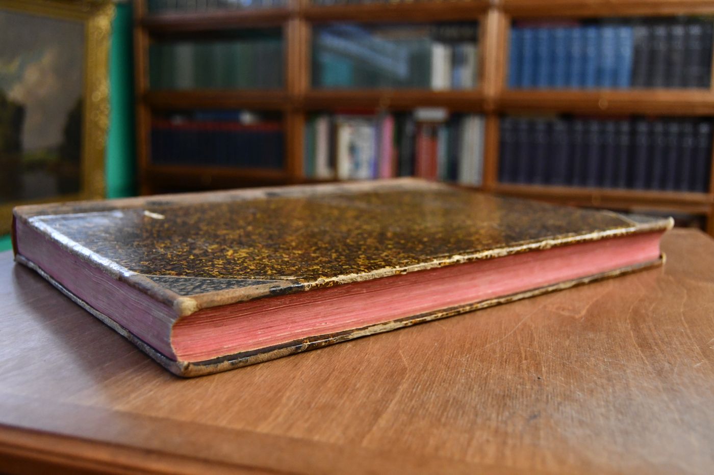 Format 42 x 30 cm, Halbleder mit umlaufenden Rotschnitt