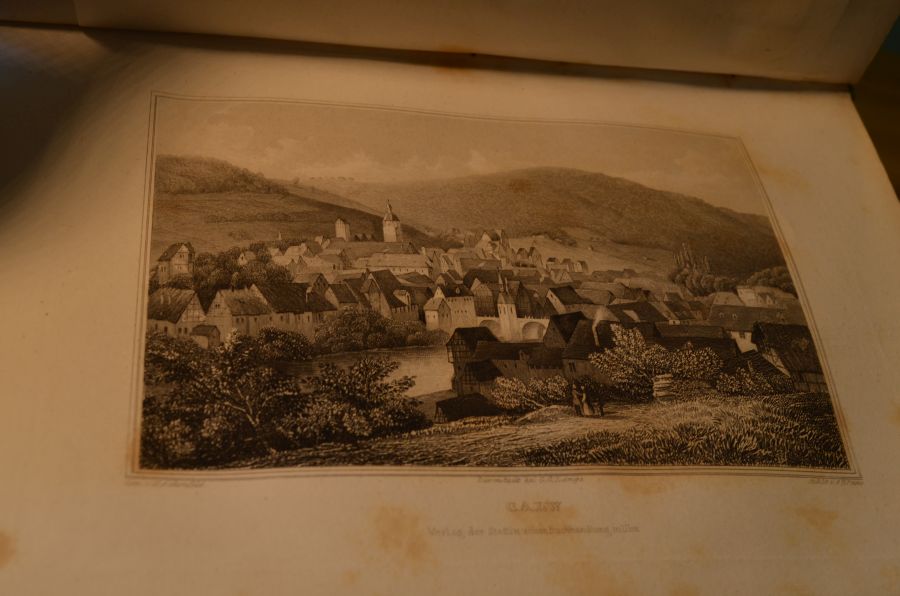 Beschreibung Einband berieben, bestoßen und mit Fehlstellen. Mit Exlibris auf Innendeckel. Durchgehend fleckig. An den fehlenden Stahlstichen mit Auslösespuren. Heyd I/213. Schönes Ansichtenwerk. Mit Ansichten u. a. von Blaubeuren, Esslingen, Hohentwiel, Reutlingen, Schwäb. Hall, Stuttgart, Tübingen, Ulm, Weingarten.