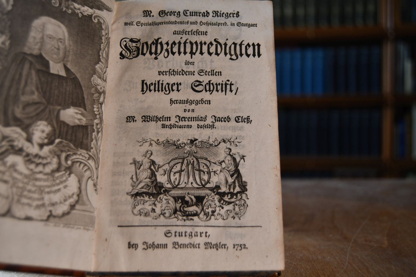 M. Georg Cunrad Riegers weil. Specialsuperintendentes und Hofpred. in Stuttgart auserlesene Hochzeitpredigten über verschiedene Stellen heiliger Schrift.
