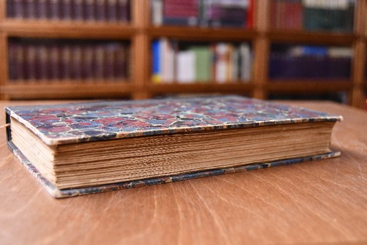 Format 25 x 17 cm, Halbleder der Zeit mit 5 Bünden und Rückenvergoldung