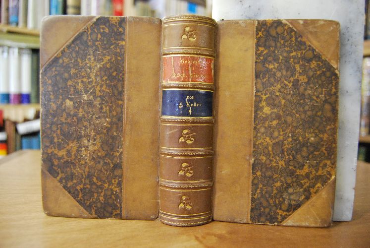 Format 15 x 11 cm, Halbleder mit 5 Bünden und 2 Rückenschildern sowie etwas Vergoldung und Kopfgoldschnitt