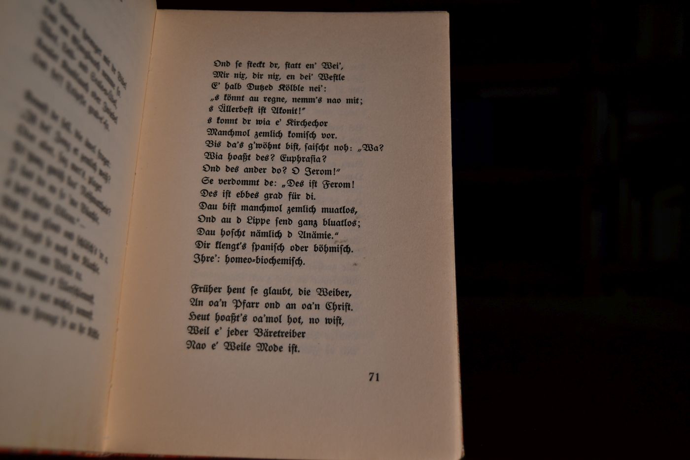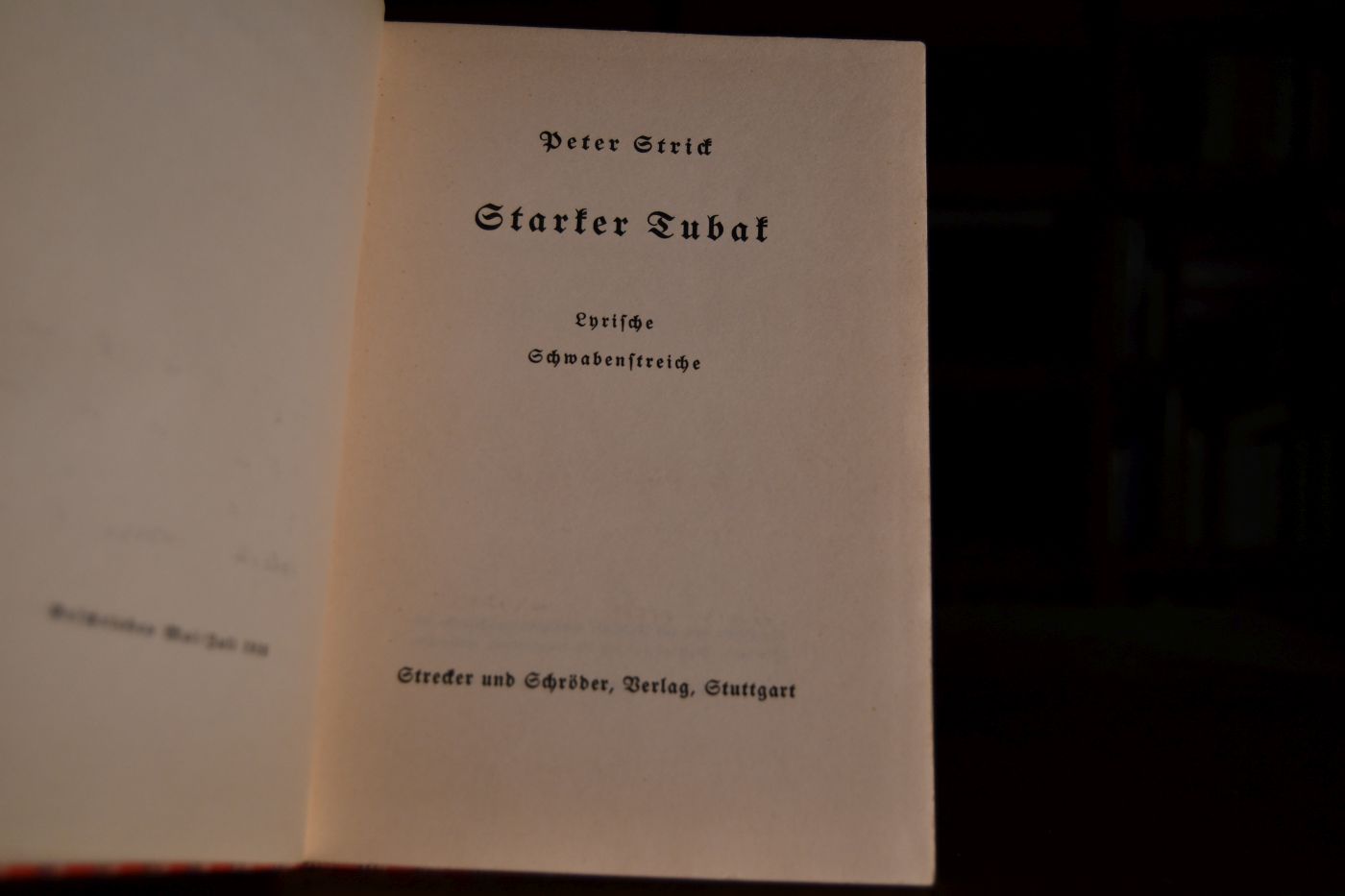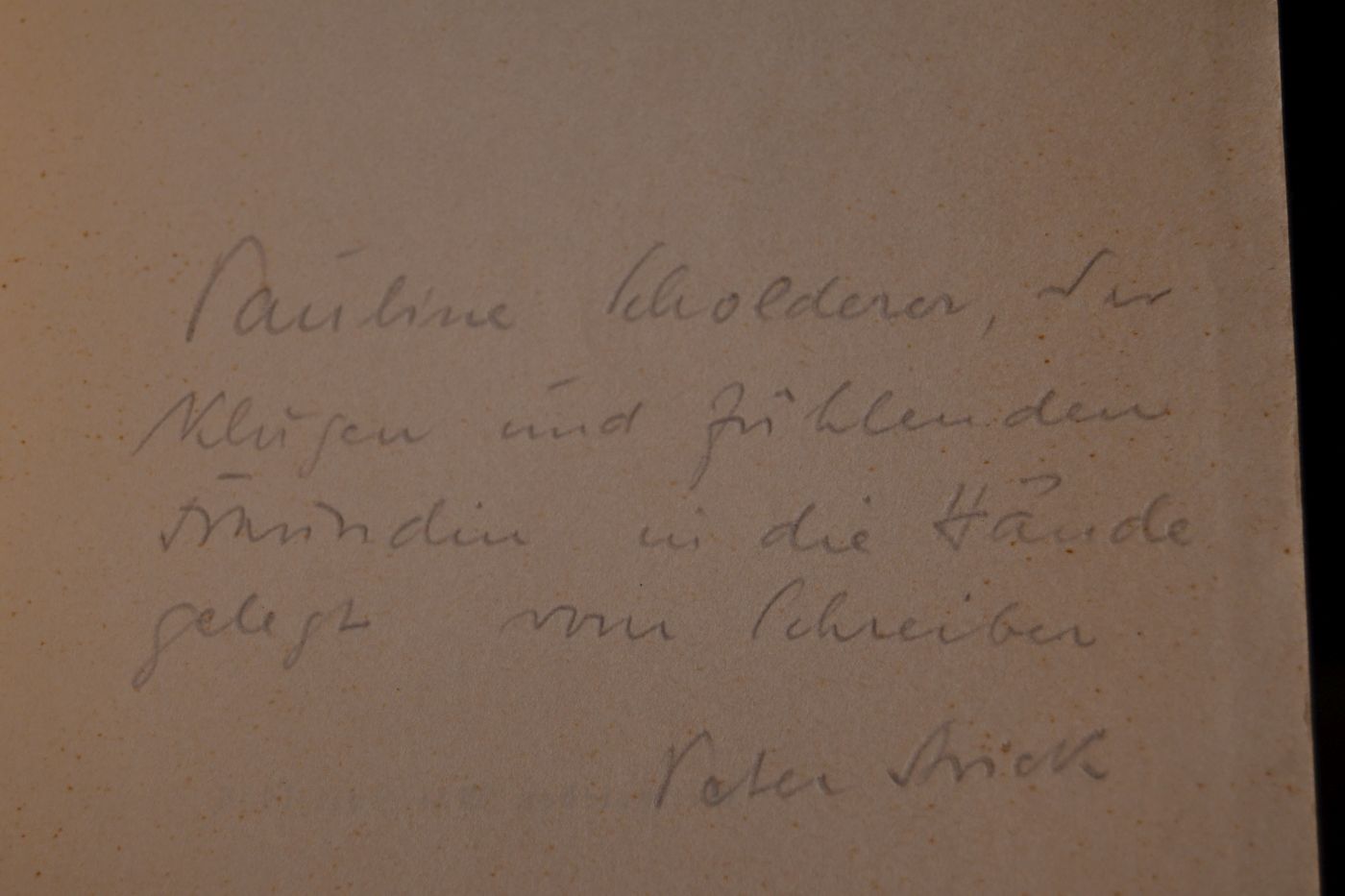 Beschreibung Einband berieben, bestoßen und fleckig. Schnitt fleckig, Vorderer Falz geöffnet. Mit handschriftlicher Widmung von Peter Strick an Pauline Scholderer auf dem Schmutztitel.