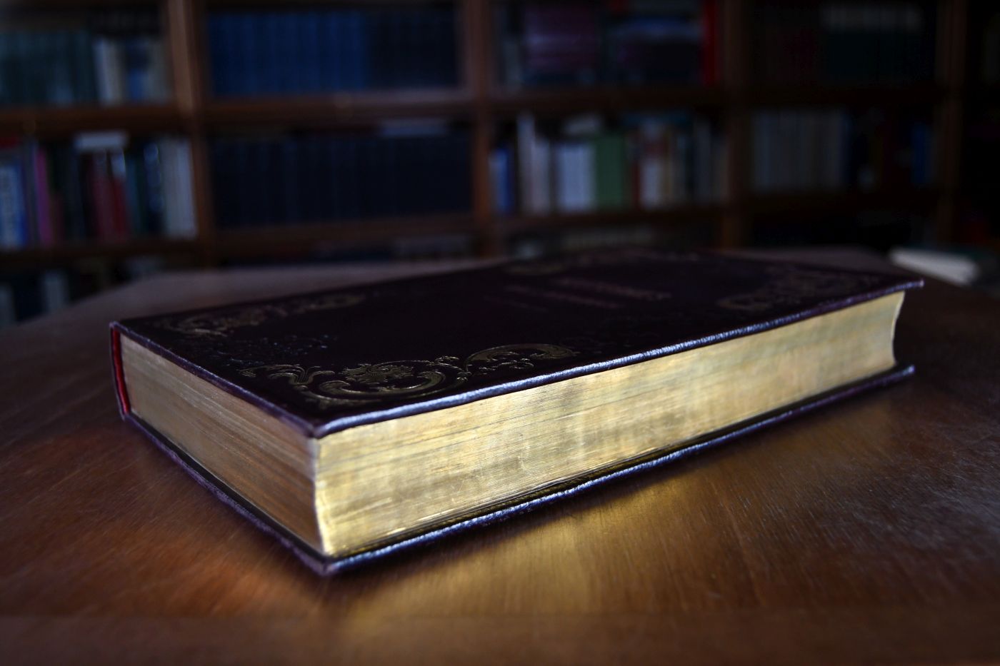 Format 26 x 18 cm, geprägtes Leder mit umlaufenden Goldschnitt