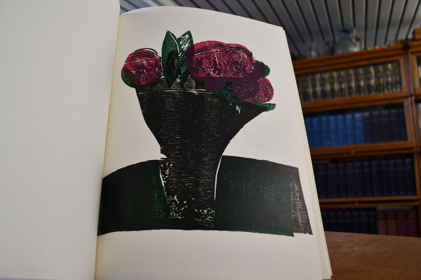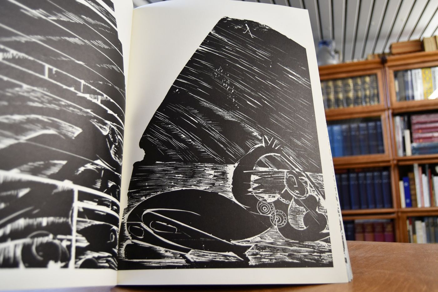 Seiten [86] S., mit einem ganzseit. Grieshaber-Foto als Vortitelbild, 52, teils ganzseit. Holzschnitten, davon 12 als Or.-Holzschnitt, 3 davon in Farbe, mehrere in schw.-Silber, Rest schw/w.