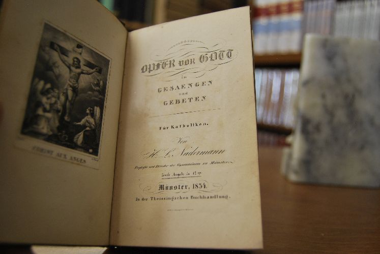 Beschreibung Einband berieben und bestoßen. Lederkanten auf Vorsätzen durchschlagend. Handschriftlicher Besitzereintrag auf Vorsatz (Franz von Olfers). Gelegentlich wenig fleckig. Gutes Leseexemplar. "Hermann Ludwig Nadermann (* 30. Dezember 1778 in Münster (Westfalen); † 31. Oktober 1860 ebenda) war ein deutscher römisch-katholischer Priester, Pädagoge und Kirchenlieddichter. Nadermann studierte an der Universität Münster Philologie und Katholische Theologie. 1804 zum Priester des Bistums Münster geweiht, wirkte er schon ab 1803 als Lehrer am Gymnasium Paulinum in Münster und ab 1820 als dessen Direktor. 1841 wurde er zum Domkapitular berufen und legte sein Direktorenamt nieder. Seit 1824 war er Mitglied der wissenschaftlichen Prüfungskommission und Direktor des philologischen Seminars, eine Stellung, die er bis zum Jahre 1853 innehatte. Neben Schulschriften und der Herausgabe von lateinischen Klassikern für den Schulgebrauch verfasste er eine Reihe von deutschen geistlichen Liedern, darunter eine Fassung von Veni, veni, Emmanuel." (Wikipedia)