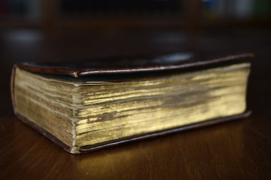 Format 12 x 8 cm, geprägtes Leder mit umlaufenden Goldschnitt
