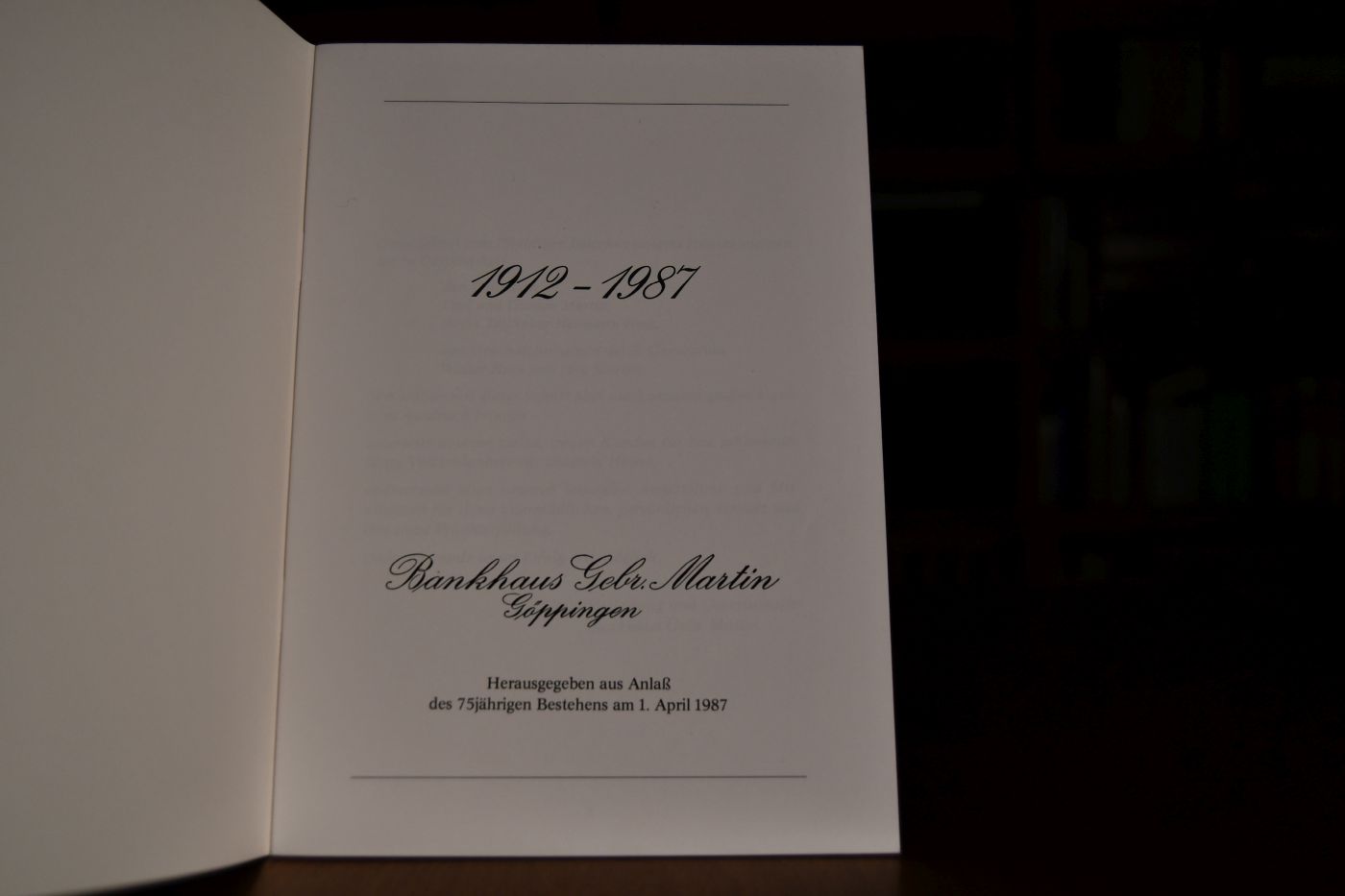 1912-1987 Bankhaus Gebr. Martin Göppingen. Herausgegeben aus Anlaß des 75jährigen Bestehens am 1. April 1987.