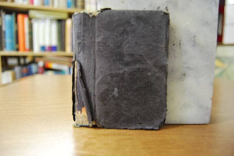 Format 11 x 7 cm, Leder mit fehlendem Rücken mit beschädigtem Papierschutzumschlag und stumpfem Goldschnitt