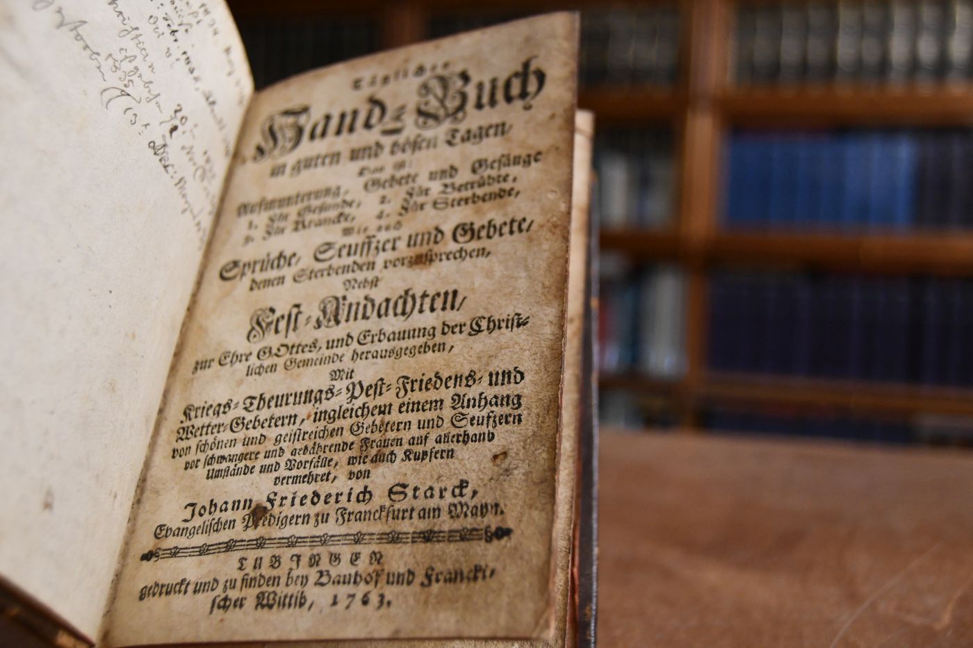 Tägliches Hand-Buch in guten und bösen Tagen. Das ist Aufmunterung, Gebete und Gesänge 1. Für Gesunde, 2. Für Betrübte, 3. Für Krancke, 4. Für Sterbende, wie auch Sprüche, Seuffzer und Gebete, denen Sterbenden vorzusprechen, Nebst Fest-Andachten, zur Ehre Gottes und Erbauung der Christlichen Gemeinde herausgegeben, Mit Kriegs-Theurungs- Pest- Friedens- und Wetter-Gebetern, ingleichem einem Anhang von schönen und geistreichen Gebetern und Seufzern vor schwangere und gebährende Frawen auf allerhand Umbstände und Vorfälle, wie durch Kupfern vermehret.