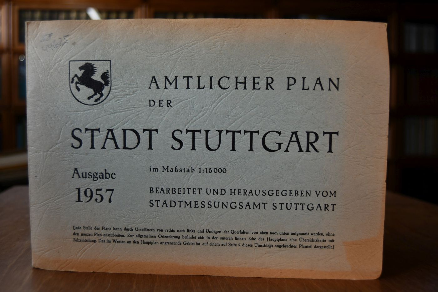 Amtlicher Plan der Stadt Stuttgart im Maßstab 150000 bearbeitet und herausgegeben vom Stadtmessungsamt. Ausgabe 1957.