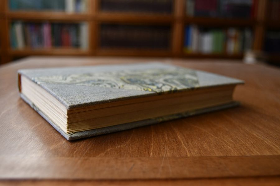 19 x 15 cm, priv. Halbleinen mit eingebundenem Broschurdeckel