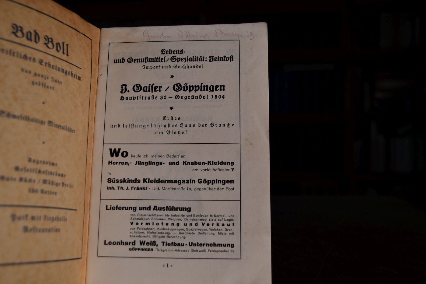 Führer für die Nebenbahn Göppingen-Boll.