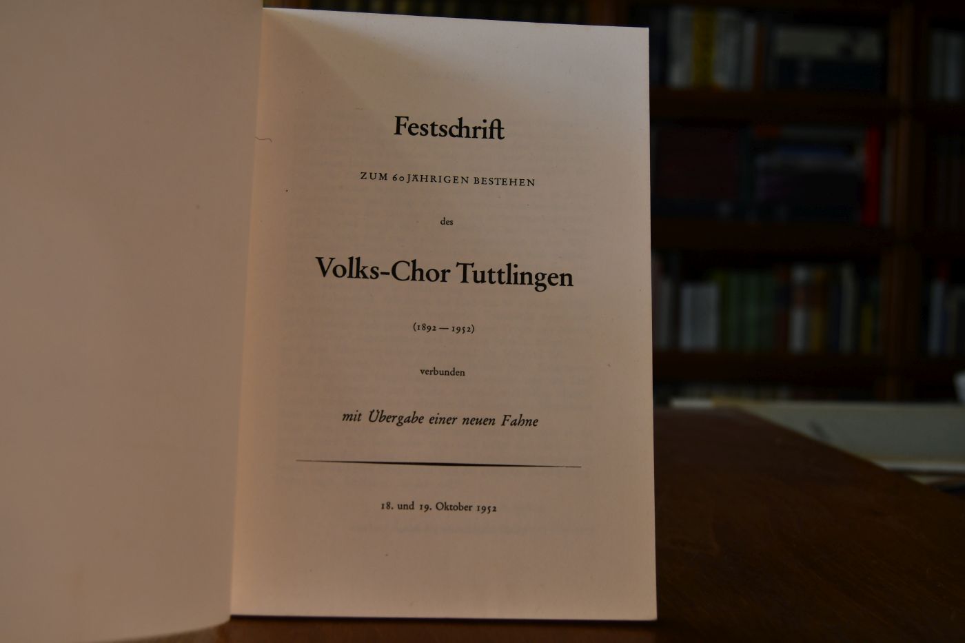 Festschrift zum 60jährigen Bestehen des Volks-Chor Tuttlingen (1892-1952) verbunden mit der Übergabe einer neuen Fahne. 18. und 19. Oktober 1952.